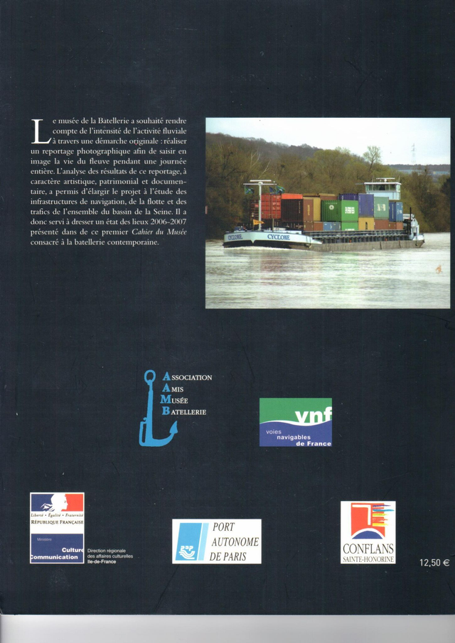 Le musée de la Batellerie a souhaité rendre compte de l’intensité de l’activité fluviale à travers une démarche originale : réaliser un reportage photographique afin de saisir en image la vie du fleuve pendant une journée entière. L’analyse des résultats de ce reportage, à caractère artistique, patrimonial et documentaire, a permis d’élargir le projet à l’étude des infrastructures de navigation, de la flotte et des trafics de l’ensemble du bassin de la Seine. Il a donc servi à dresser un état des lieux 2006-2007 présenté dans de ce premier Cahier du Musée consacré à la batellerie contemporain.